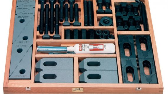 این مجموعهها برای ماشینابزارهای دارای میز با شیار T طراحی شدهاند و تمامی عناصر لازم برای گیرهبندی سریع قالبها، فیکسچرها یا قطعات کار را در خود دارند. تمامی اقلام قابل تعویض هستند و میتوان آنها را جایگزین کرد. این قطعات از فولاد آبدیده بر اساس استاندارد DIN یا استانداردهای کاری ساخته شدهاند. اقلام پیچی دارای مقاومت کششی کلاس ۸ یا ۱۰ هستند. این مجموعه در یک جعبه چوبی با درپوش قابل جدا شدن قرار دارد.