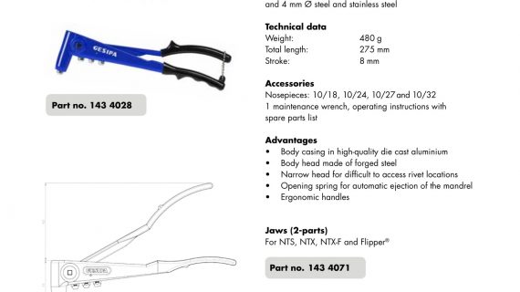 پرچکن دستی مدل NTS کمپانی Gesipa ساخت آلمان