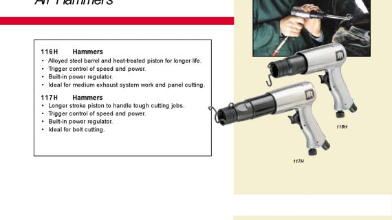 This Ingersoll Rand standard duty air hammer features a longer stroke piston for bolt cutting, exhaust and front end work. Bore Diameter (in.): 11/16, Chisels Included: No, Min. Hose Size (in.): 3/8, Air Consumption (CFM): 3, Tool Length (in.): 9 29.32, CFM at Load: 14, Shank Diameter (in.): 0.401, Case Included: No, Air Inlet Size (in. NPT): 1/4, Stroke Length (in.): 3 1/2, Blows Per Minute (BPM): 2,000